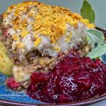 This meal is great as your holiday main, featuring a zucchini boat stuffed with a lentil, rice, and cranberry mixture and topped with crispy mashed potatoes.